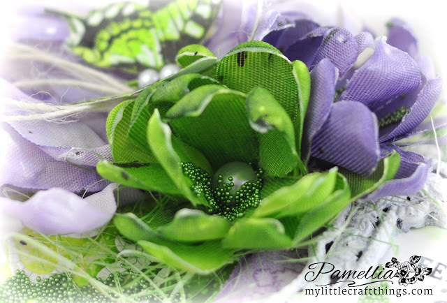 ReplyDeletePamellia, you are a crafty genius! This is spectacular! The bold colors are stunning together and my heart is so happy as I lose myself in this creation. The ribbon flowers paired with the bow must be one of my favorite combinations ever... they're so ruffly, soft, and simply exquisite. I LOVE how you even carried over the microbeads inside them... that is amazing. YOU are such a talented cookie. Thank you for sharing your videos. I will be watching them shortly. I also love the crackle paste work. I love everything from your crafty heart. :o) Gorgeous creation, my friend! Lots of hugs for you and your fluffy friends. :o)
