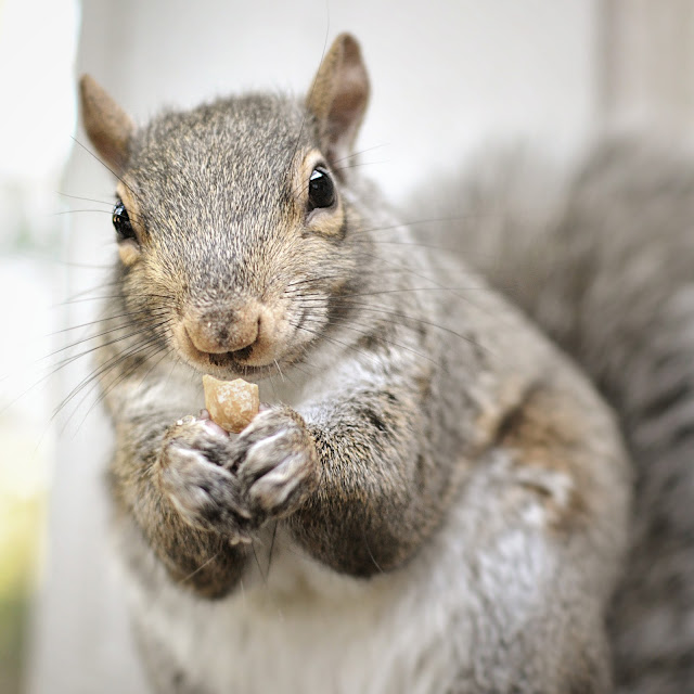 I think I made some of you nervous with my wildlife food list last post. Just want to clarify about squirrels and peanuts. By all means, throw some peanuts out to the squirrels. They love them so much, and as long as they are getting proper food from other sources, then they'll be fine. Many people have backyard squirrels that rely on the food set out for them as as their main food source, this is when it becomes a health issue for them. Just like kids and a bag of chips or a chocolate bar, it's ok for them have a some now and again, as long as it's not the only thing they eat. If your worried, toss in a few mixed nuts the odd time, they love those too!